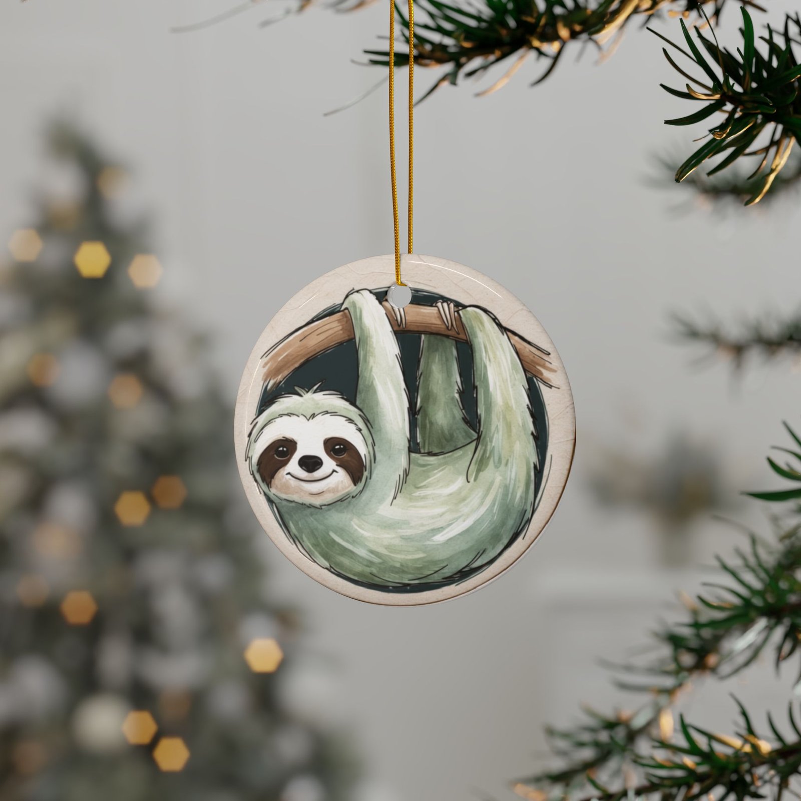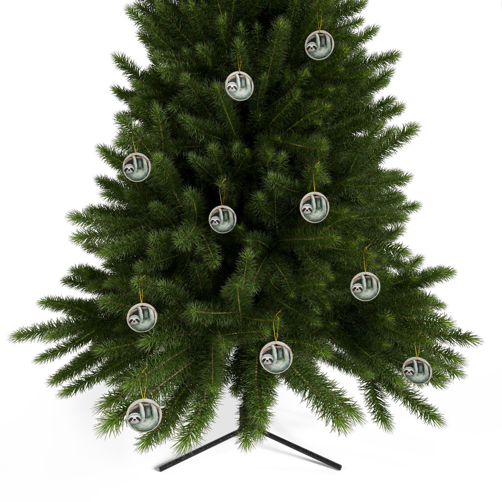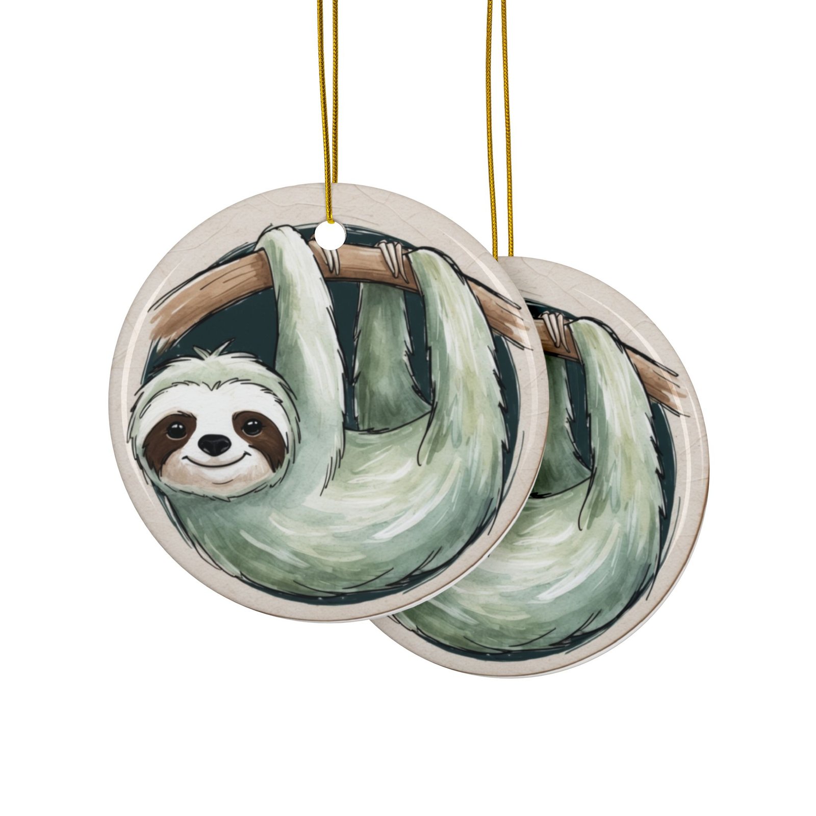 Sammy the Sloth Ceramic Slothmas Ornaments – 2-Sided Print (1pc, 3pcs, 5pcs, 10pcs) Christmas Ornament